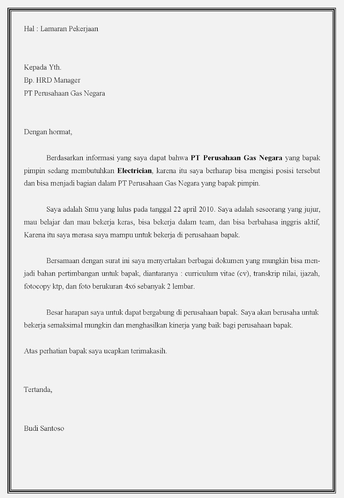Contoh Surat Lamaran Kerja Ptpn 4