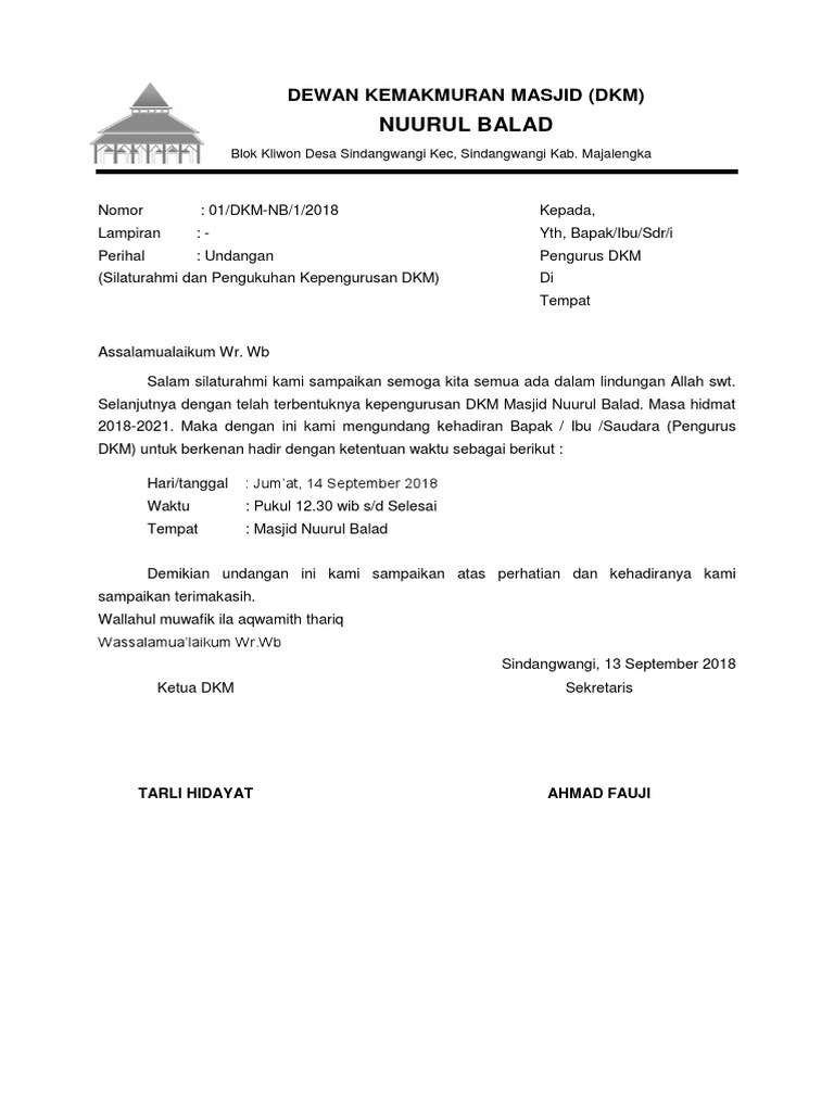 Contoh Surat Undangan Dkm Masjid - Surat 31