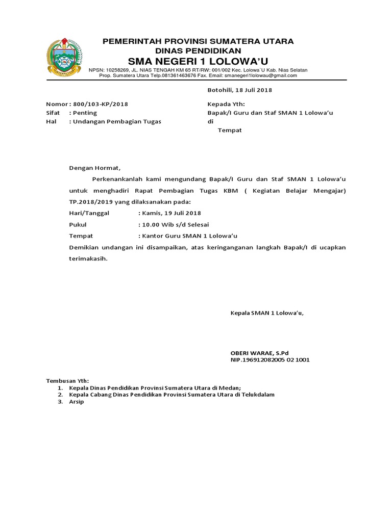 Contoh Surat Undangan Rapat Sekolah | Undangan, Sekolah, Surat
