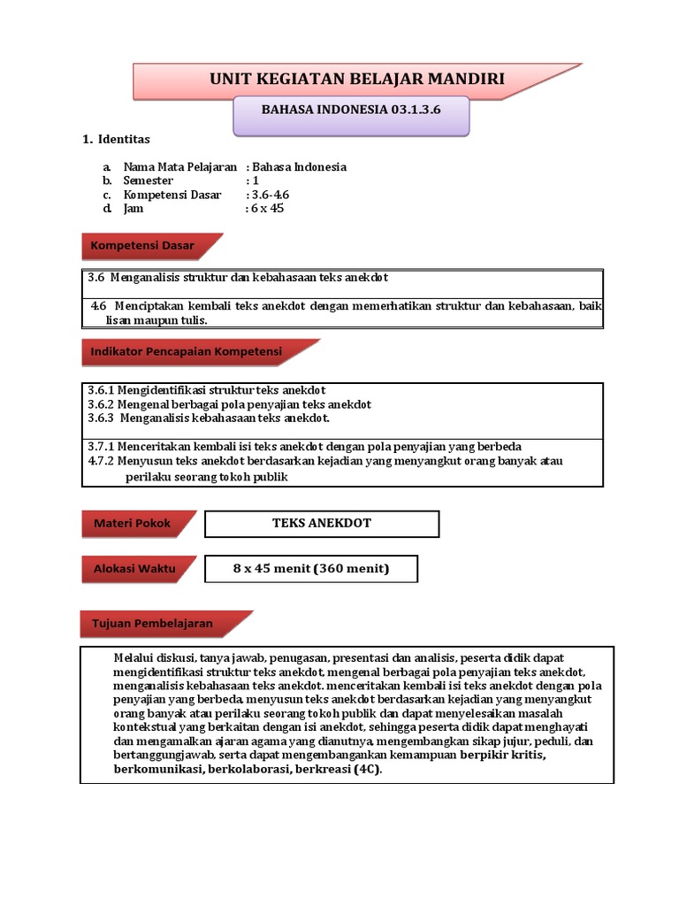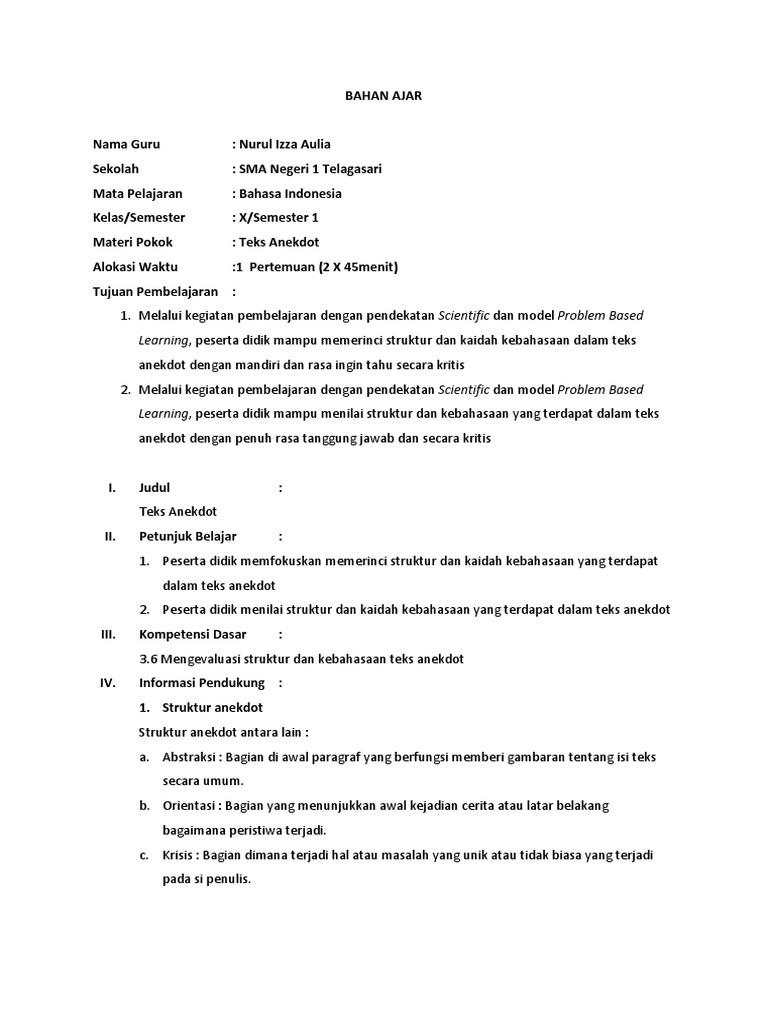 DOC) KD 3 6 dan 4 6 Teks Anekdot | Subasita Anggriana - Academia.edu