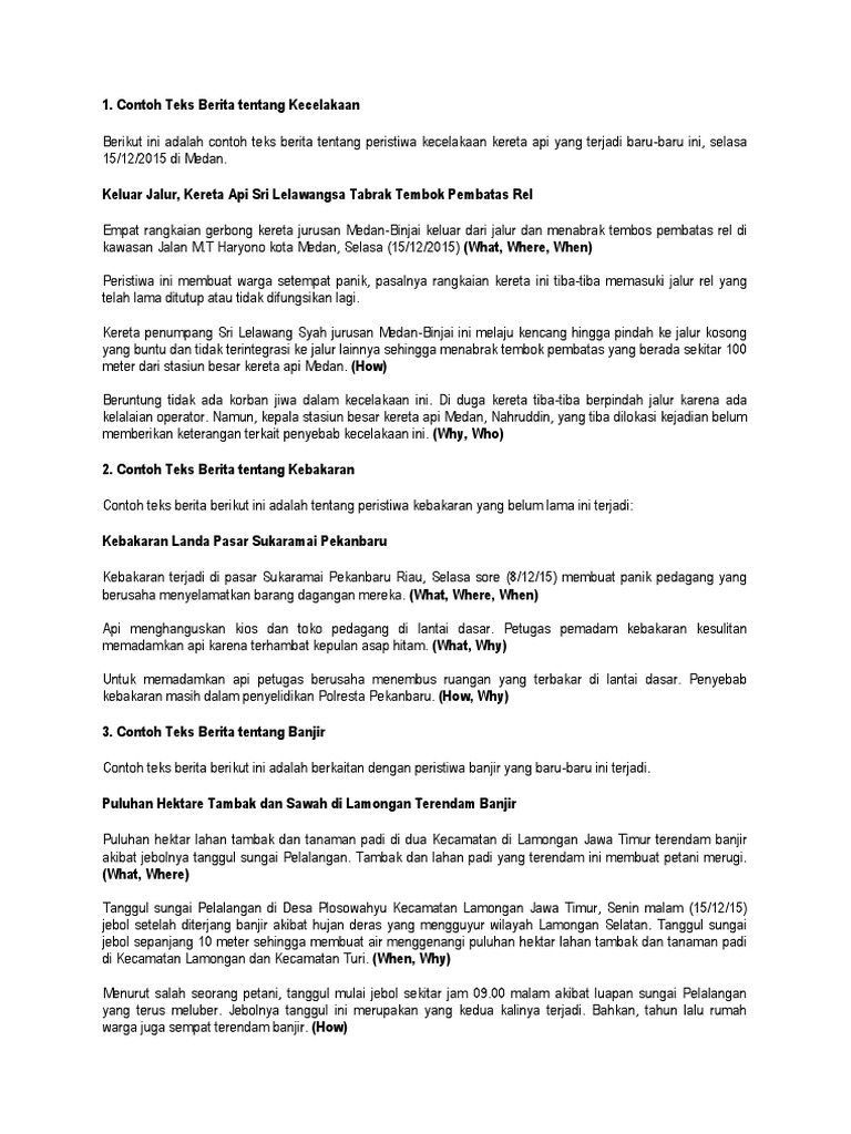 12 Contoh Teks Berita Singkat (5W + 1H) Tentang Pendidikan, Bencana Alam, Banjir, Lingkungan, Kesehatan, Kebudayaan, Kesenian, Kecelakaan, Kebakaran, Olahraga, Politik dan Ekonomi | Blog Bahasa Indonesia