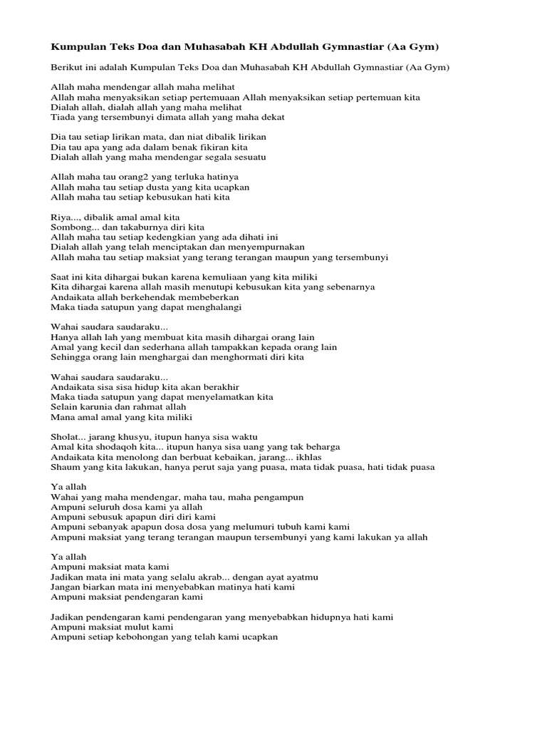 Contoh Teks Doa Aa Gym