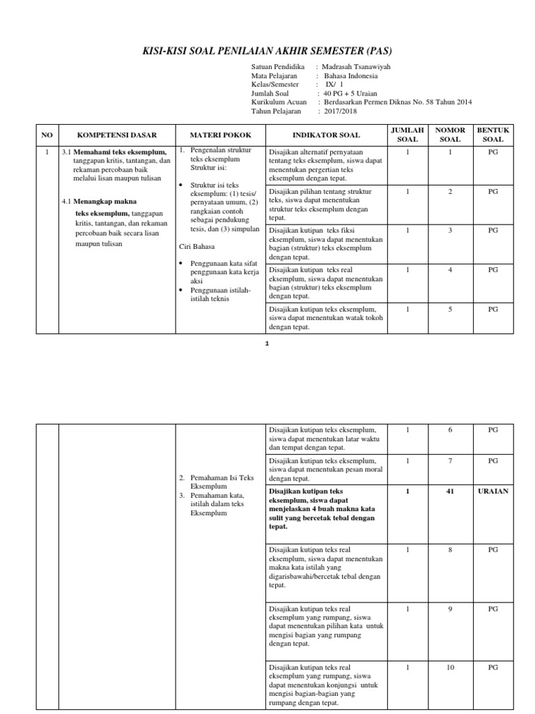 Kisi-Kisi Soal Penilaian Akhir Semester (Pas)