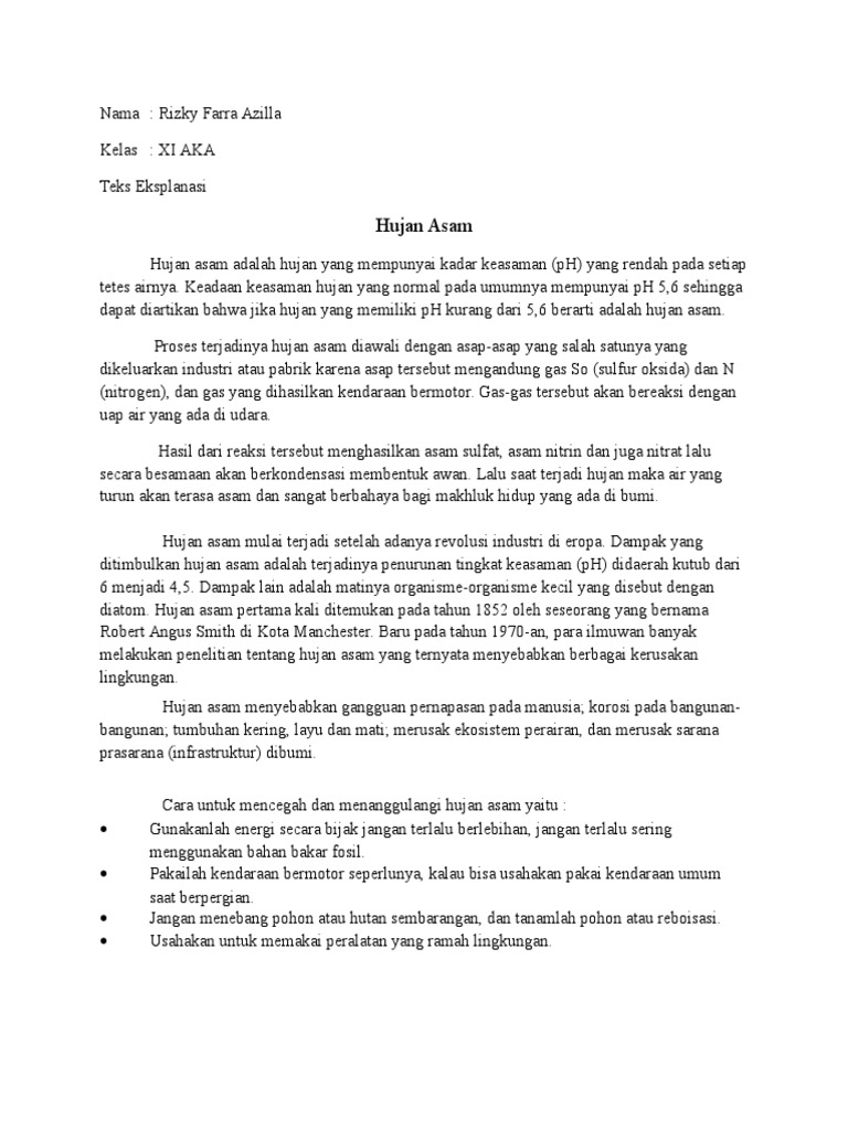 Teks Eksplanasi Hujan Asam Beserta Struktur