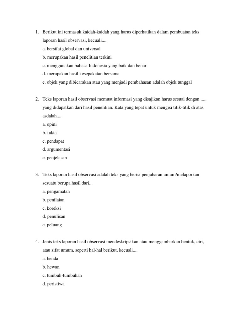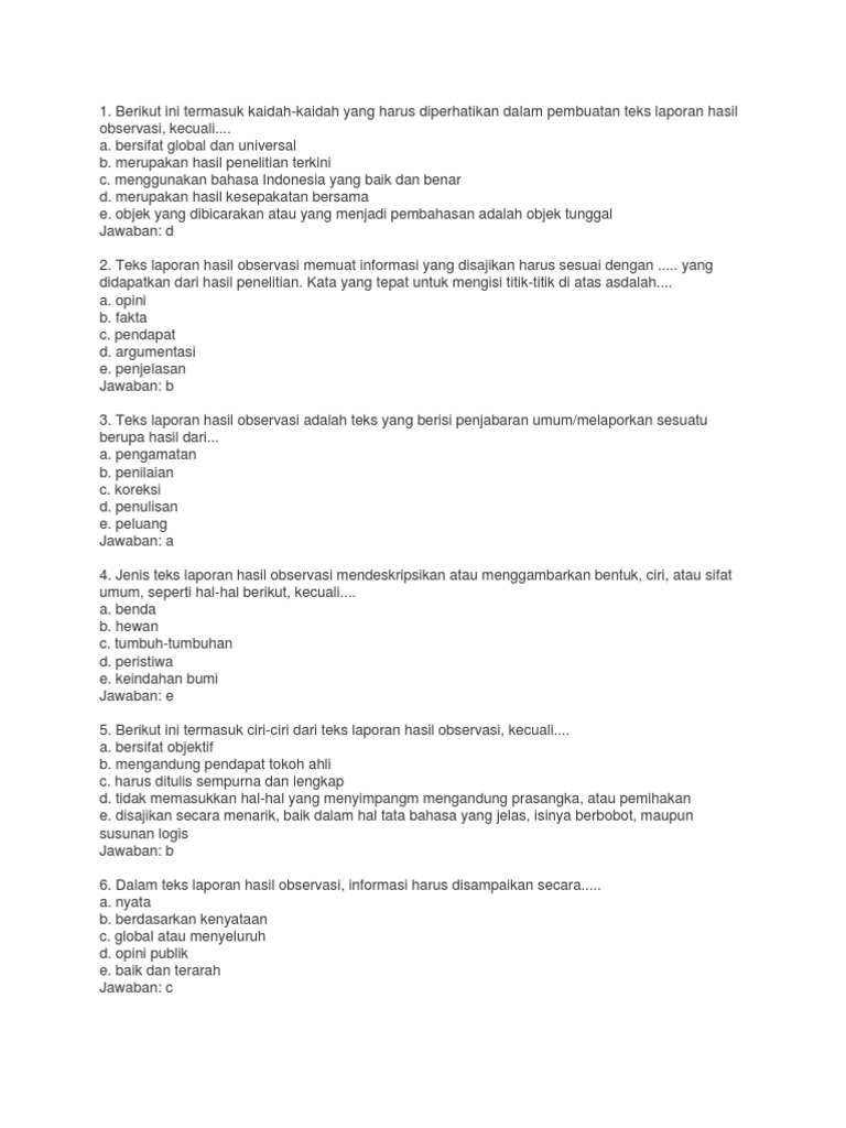 50+ Contoh Soal Pilihan Ganda Teks Laporan Hasil Observasi dan Jawabannya
