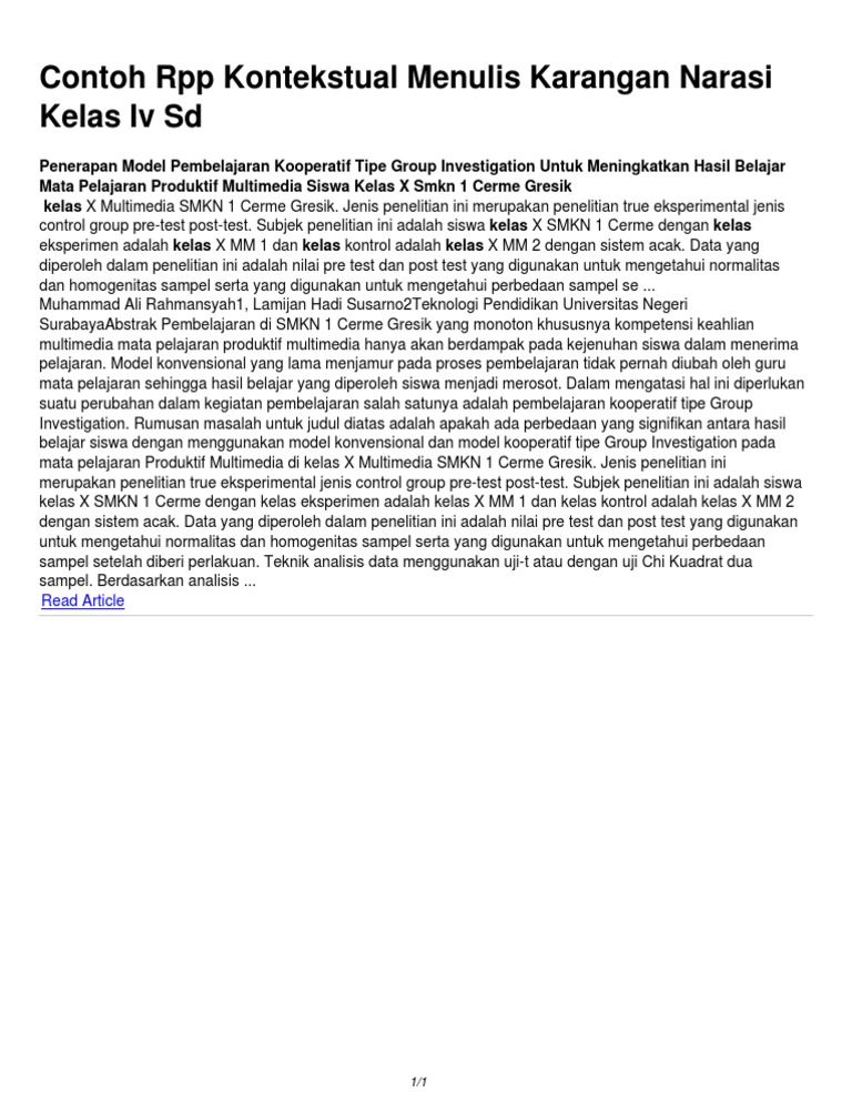 Contoh Rpp Kontekstual Menulis Karangan Narasi Kelas IV Sd