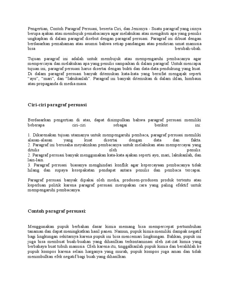 Contoh Paragraf Persuasi Atau Persuasif