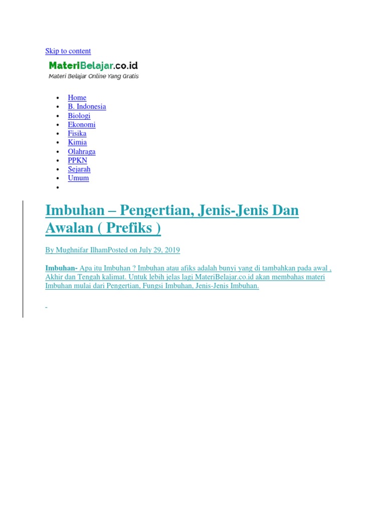 Imbuhan Pengertian, Jenis-Jenis Dan Awalan ( Prefiks ): Skip to content