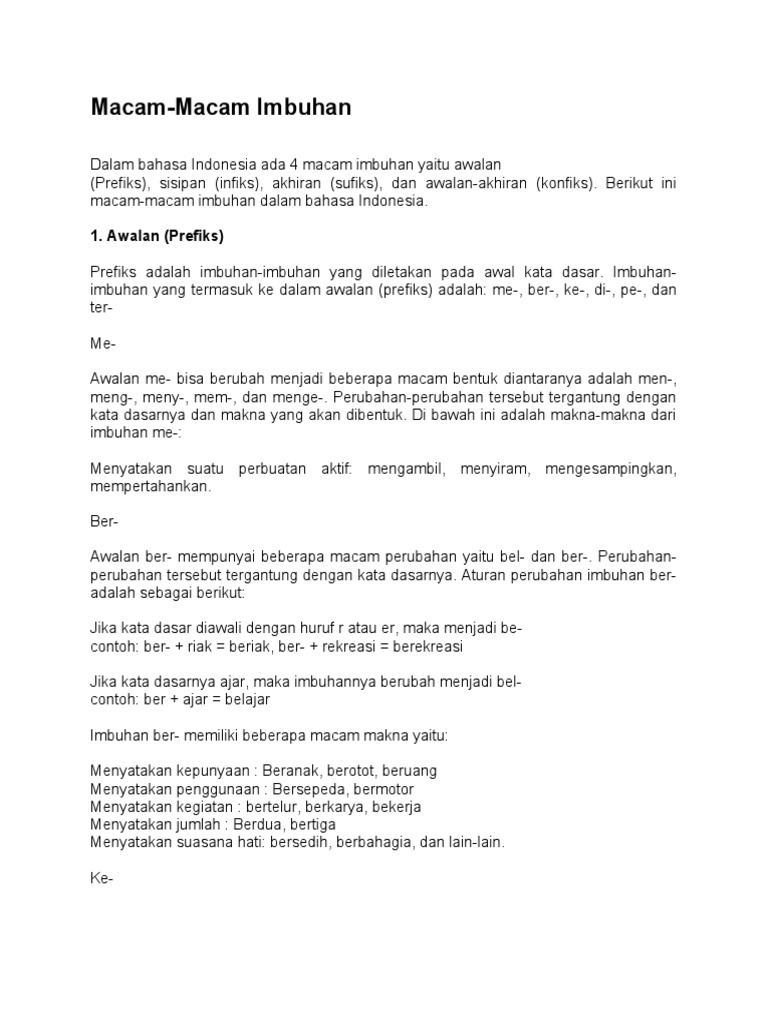 Macam Imbuhan