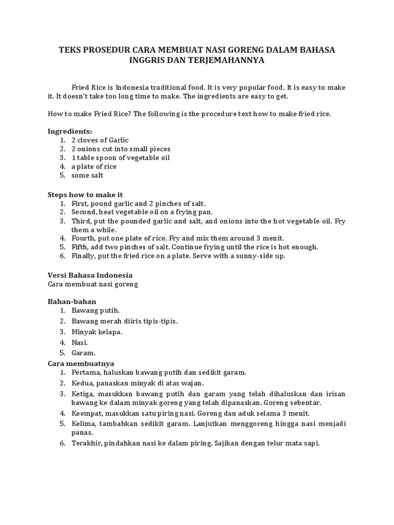 Teks Prosedur Cara Membuat Nasi Goreng Dalam Bahasa Inggris - Berbagai Teks Penting
