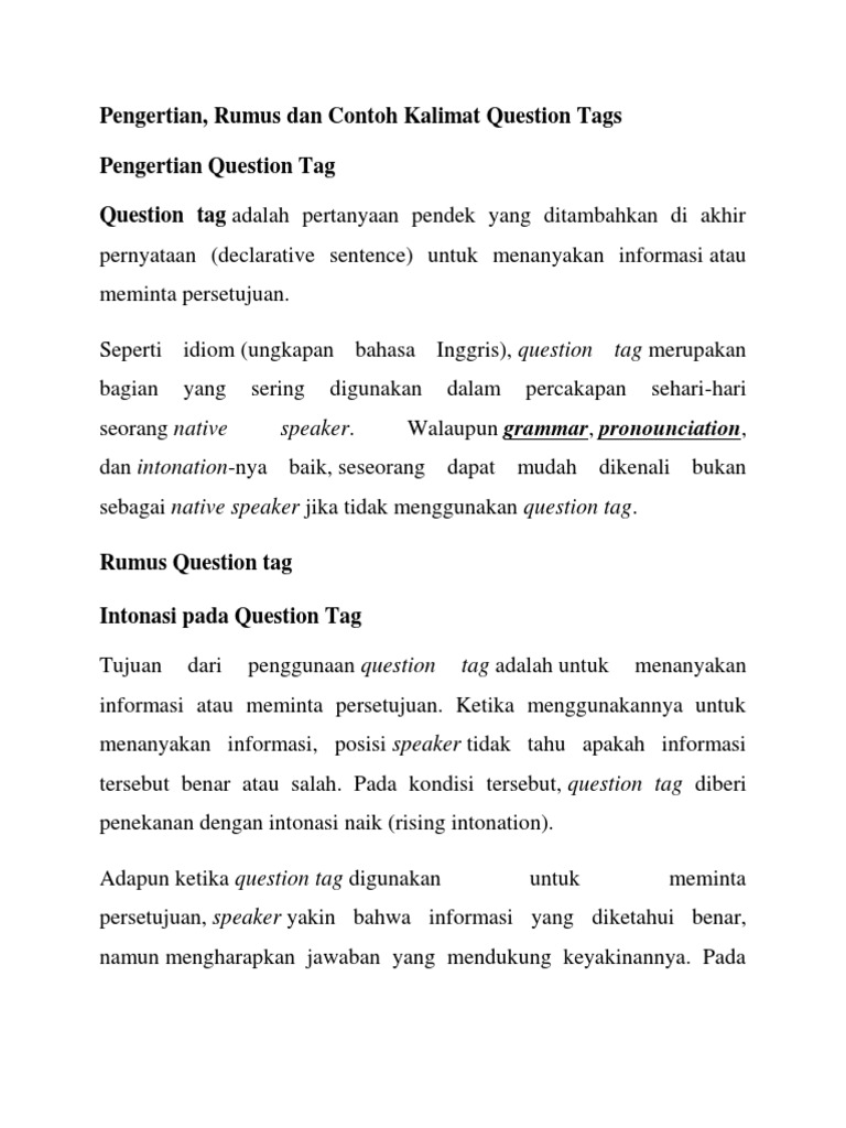 Contoh Soal Question Tag | Contoh Soal Dan Materi Pelajaran 1