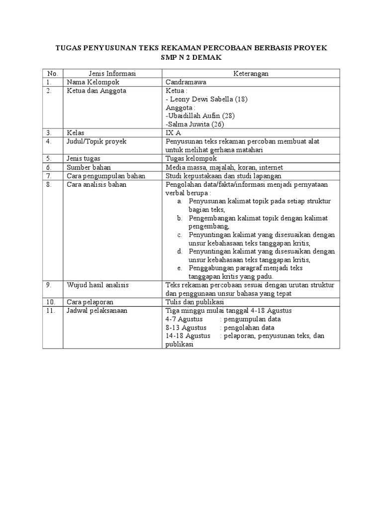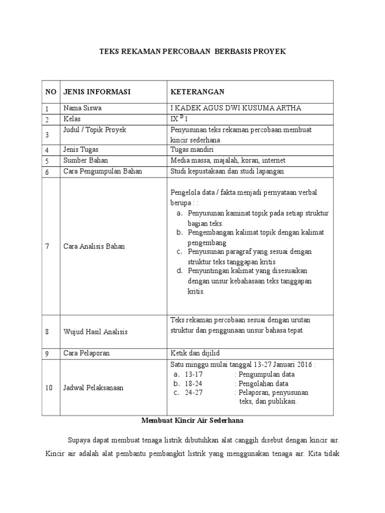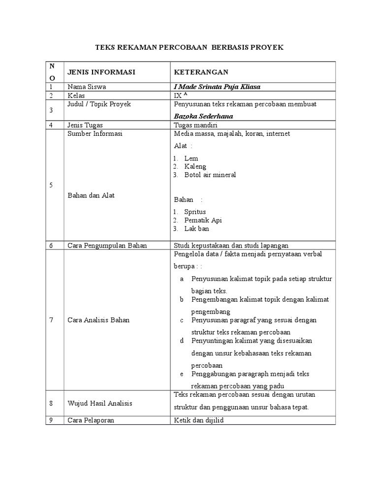 Tugas Penyusunan Teks Rekaman Percobaan Berbasis Proyek