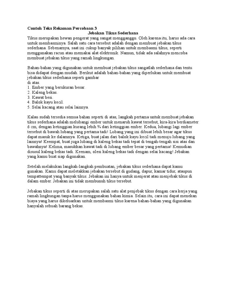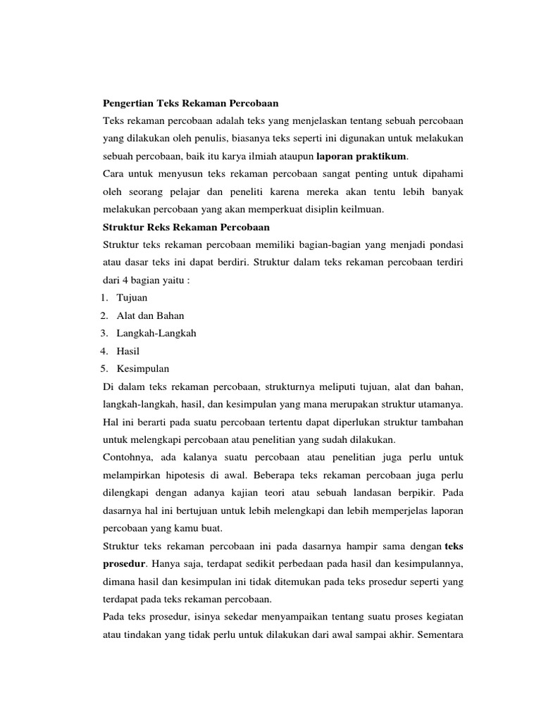 Contoh Teks Rekaman Percobaan | Struktur teks, Teks, Membaca