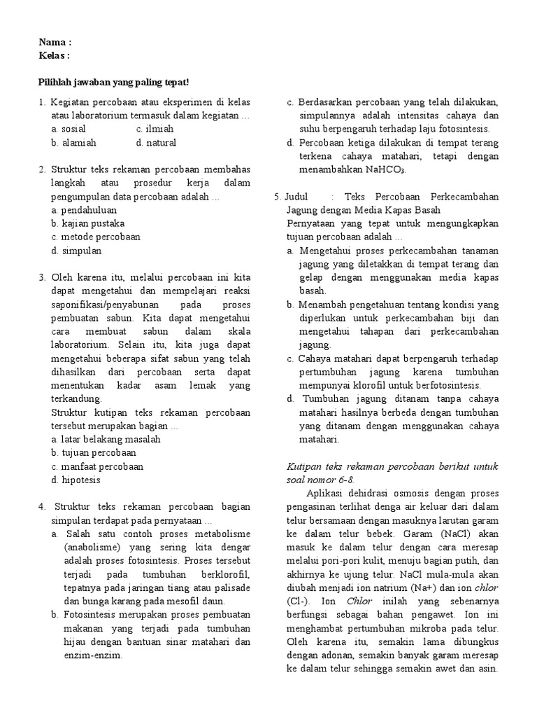 Contoh Soal Menelaah Teks Rekaman Percobaan
