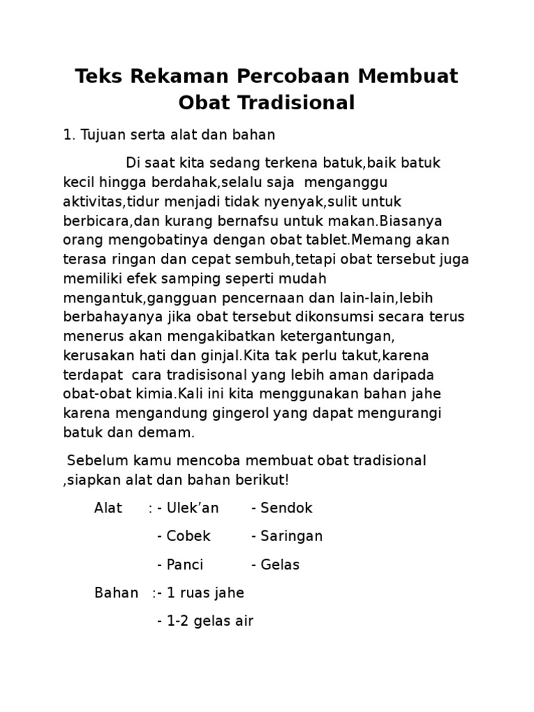 Teks Rekaman Percobaan Membuat Obat Tradisional.docx