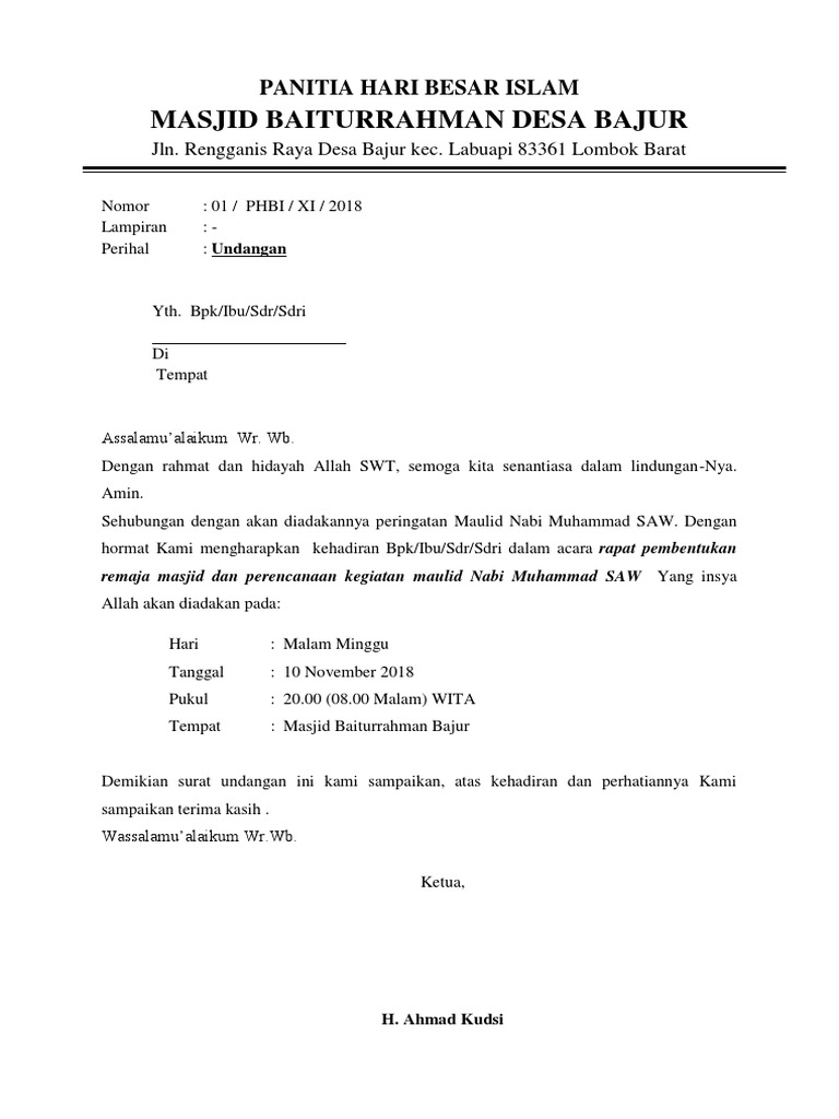 DOC) Surat Undangan Maulid Nabi Muhammad Saw | yulius gocar2017 - Academia.edu