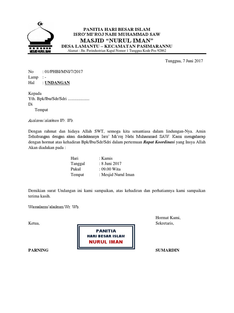 Lengkap Contoh Surat Undangan Isra Miraj Untuk Masyarakat – cute766
