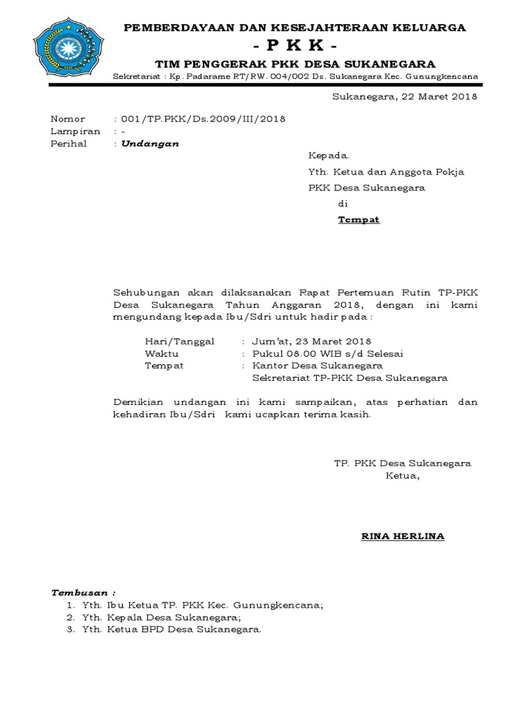 CONTOH SURAT UNDANGAN PKK - husnuls492.com