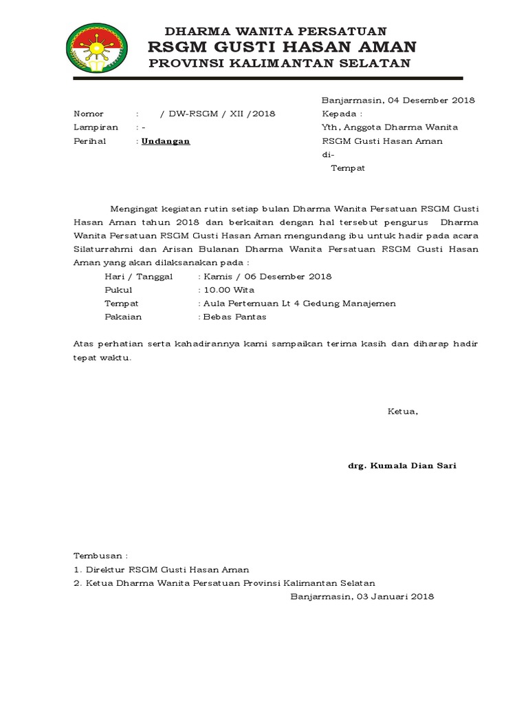 Contoh Surat Undangan Dharma Wanita Persatuan - Kumpulan Surat Penting