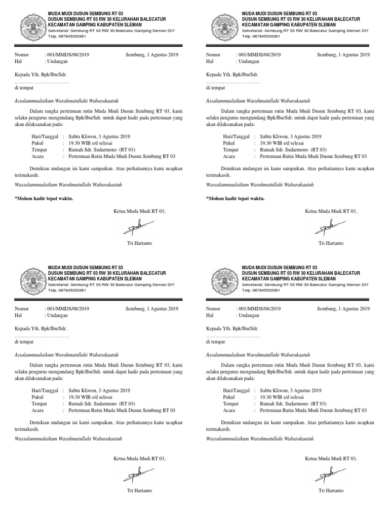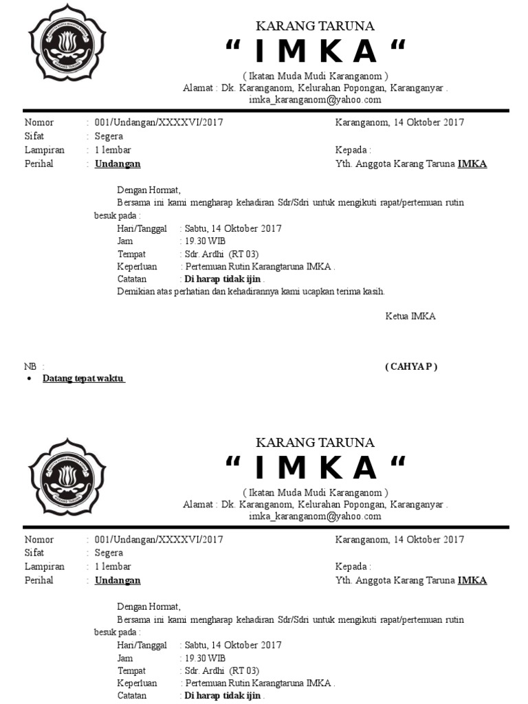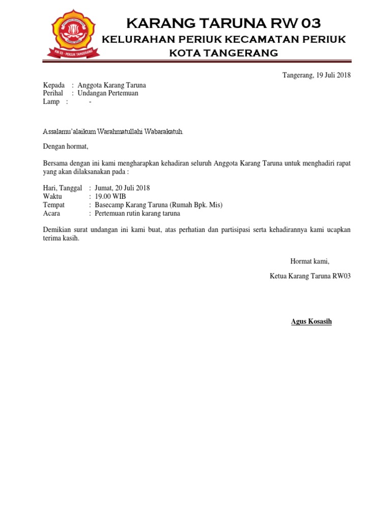 DOC) Contoh Surat Undangan Rapat Rutin Karang Taruna.docx | Guru Sepuh - Academia.edu