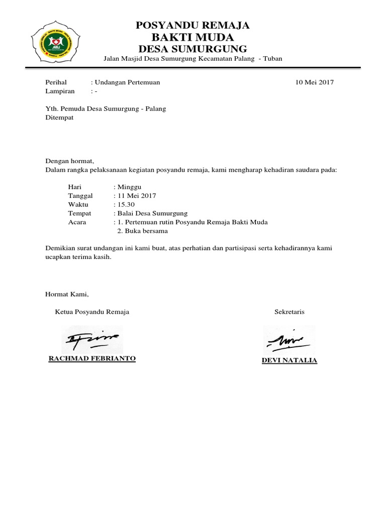 Contoh Undangan Rapat Karang Taruna | Guru Paud