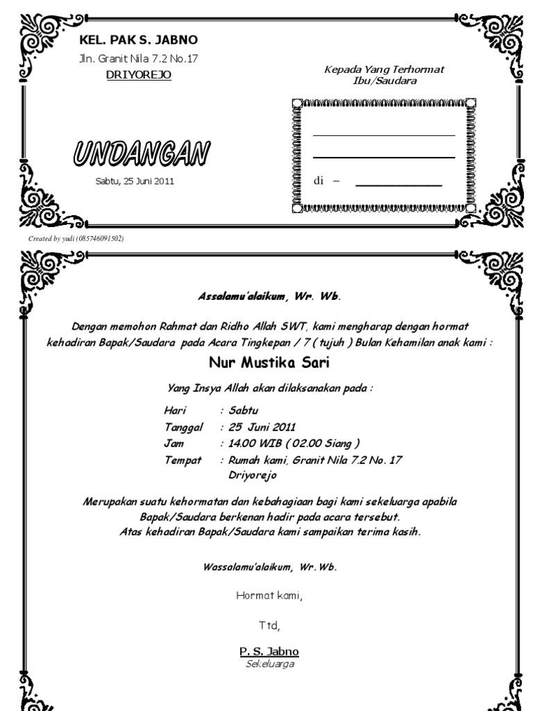 CONTOH UNDANGAN 7 BULANAN | sabdalangit’s web: Membangun Bumi Nusantara yang Berbudi Pekerti Luhur
