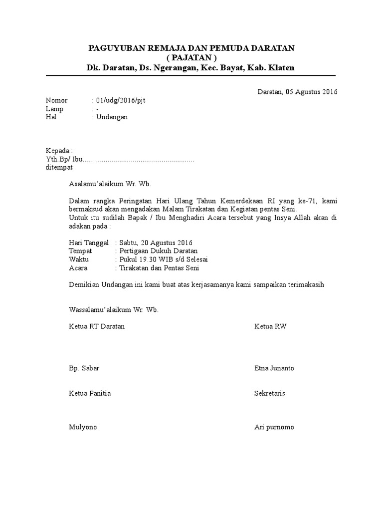 DOC) Surat Undangan Agustusan | Jennevan Trenggono - Academia.edu