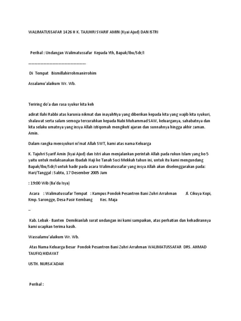 DOC) Contoh Konsep Surat Undangan Walimatus Safar dan Umroh Word | Kurniawan M. Rifai - Academia.edu