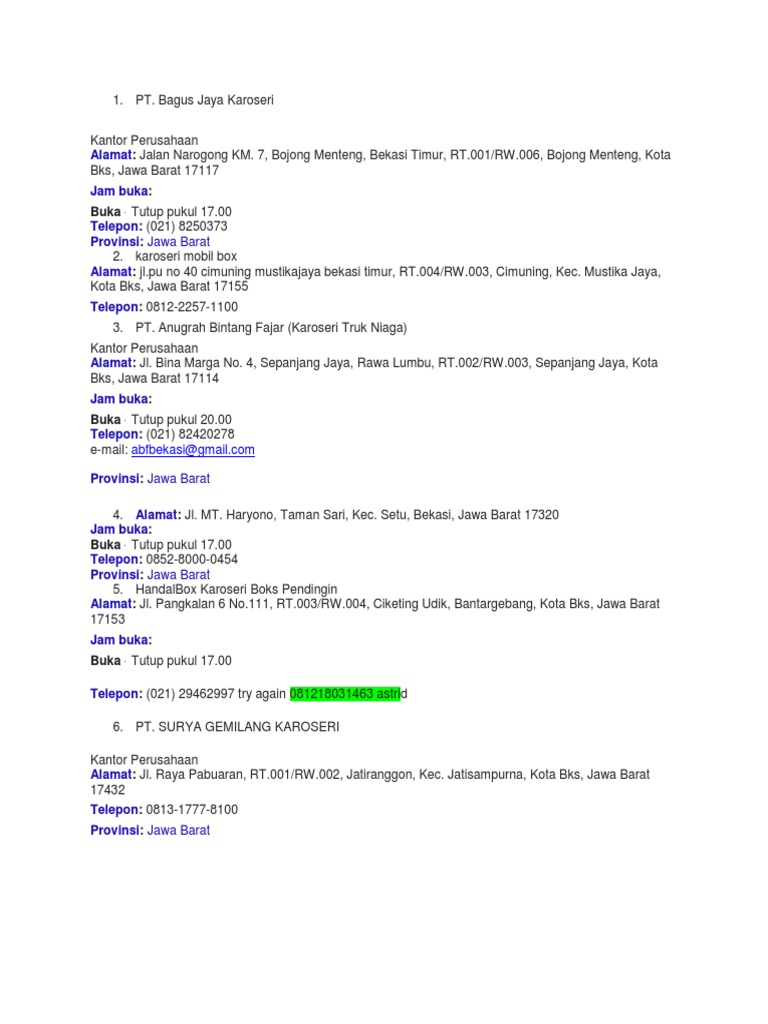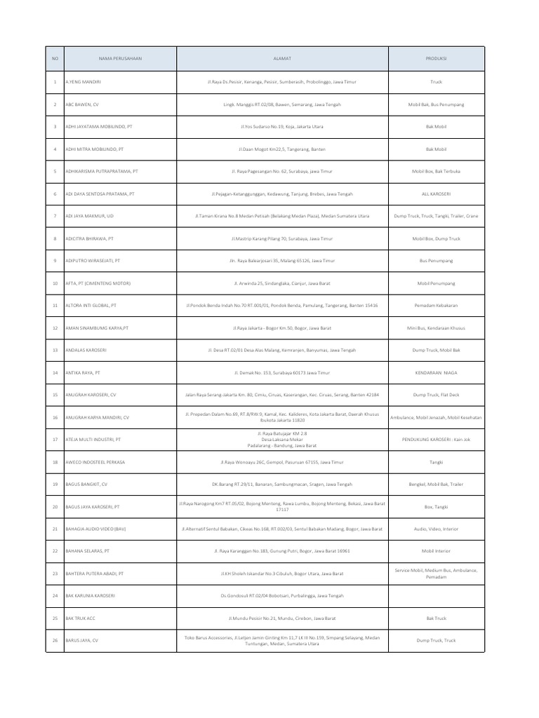 Daftar Alamat Perusahaan Karoseri Jawa Barat