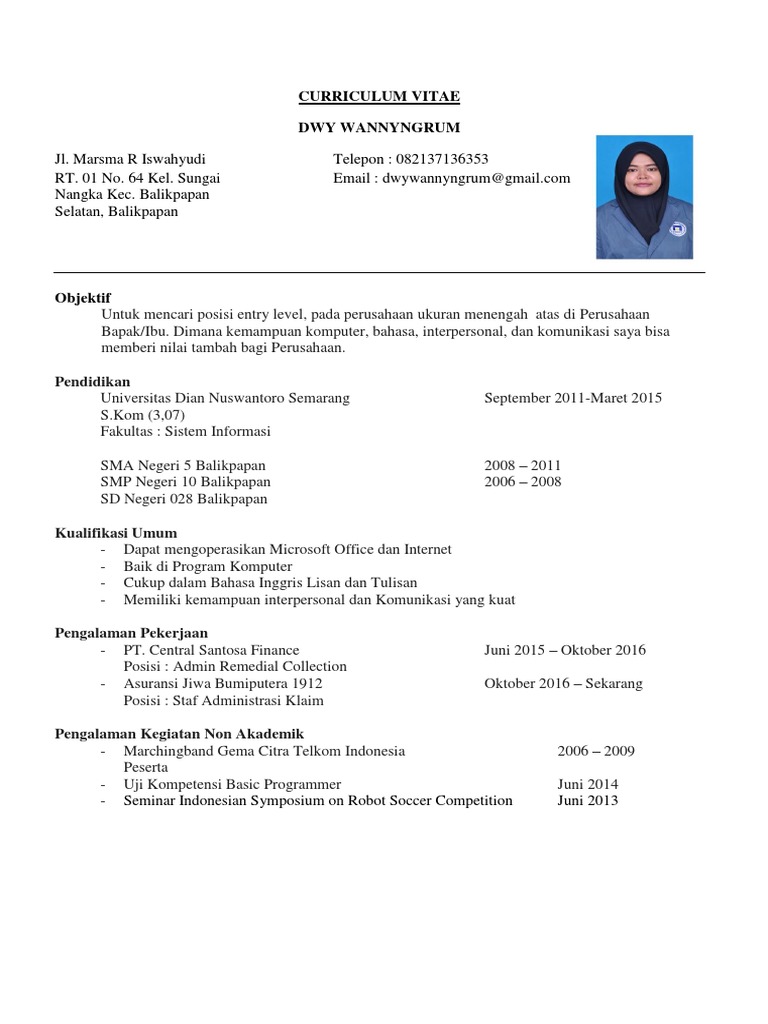 It’s Me Linda Nc: Contoh CV / Daftar Riwayat Hidup Terbaru Untuk Fresh Graduate