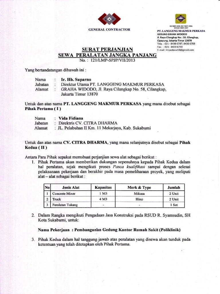 13. Surat Perjanjian Sewa Alat Cv Citra