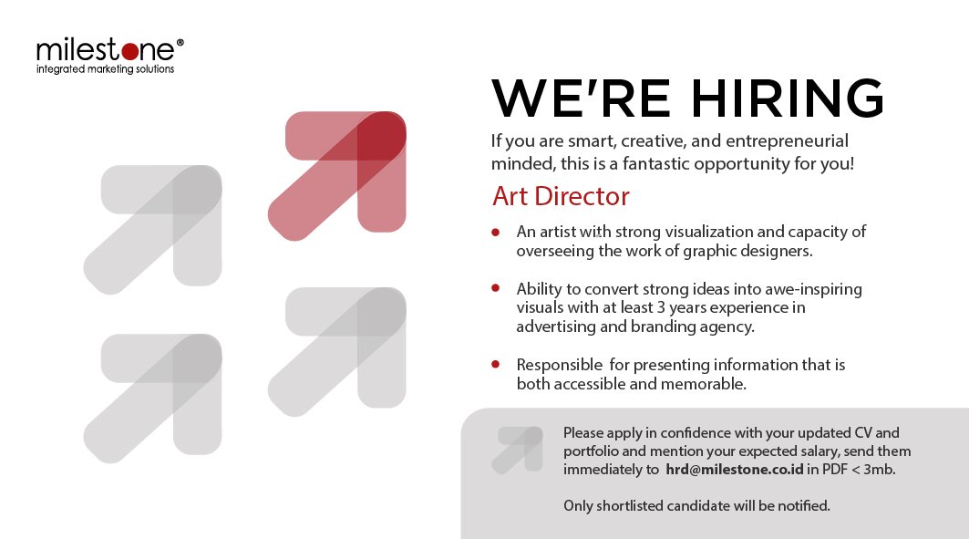 Milestone Indonesia on Twitter: “Vacancy for Art Director at Milestone. Send your latest CV and portfolio to : hrd@milestone.co.id @ArtDirectorClub https://t.co/MyNKGKyrZl”