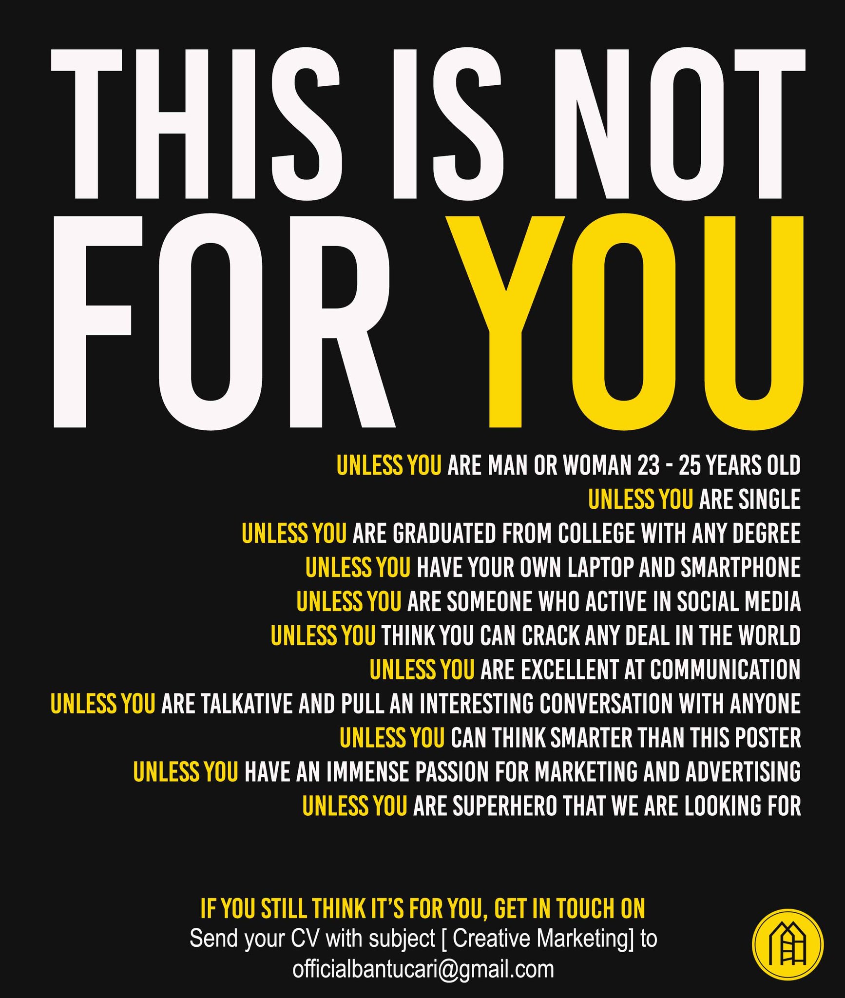 Bantucari Indonesia on Twitter: “Hi, Bantucari Indonesia is in need of you who work with creative and experienced in this field : - Creative Marketing Director - Marketing Executive/Marketing Communication (Ads Sales)