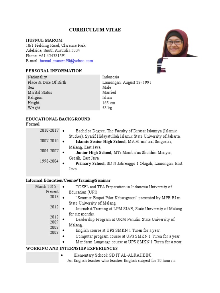 example of cv | Secondary School | Middle Schools
