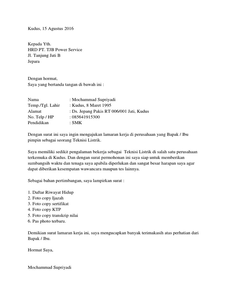 Contoh Surat Lamaran Kerja Bahasa Indonesia | Learning | Personal Growth