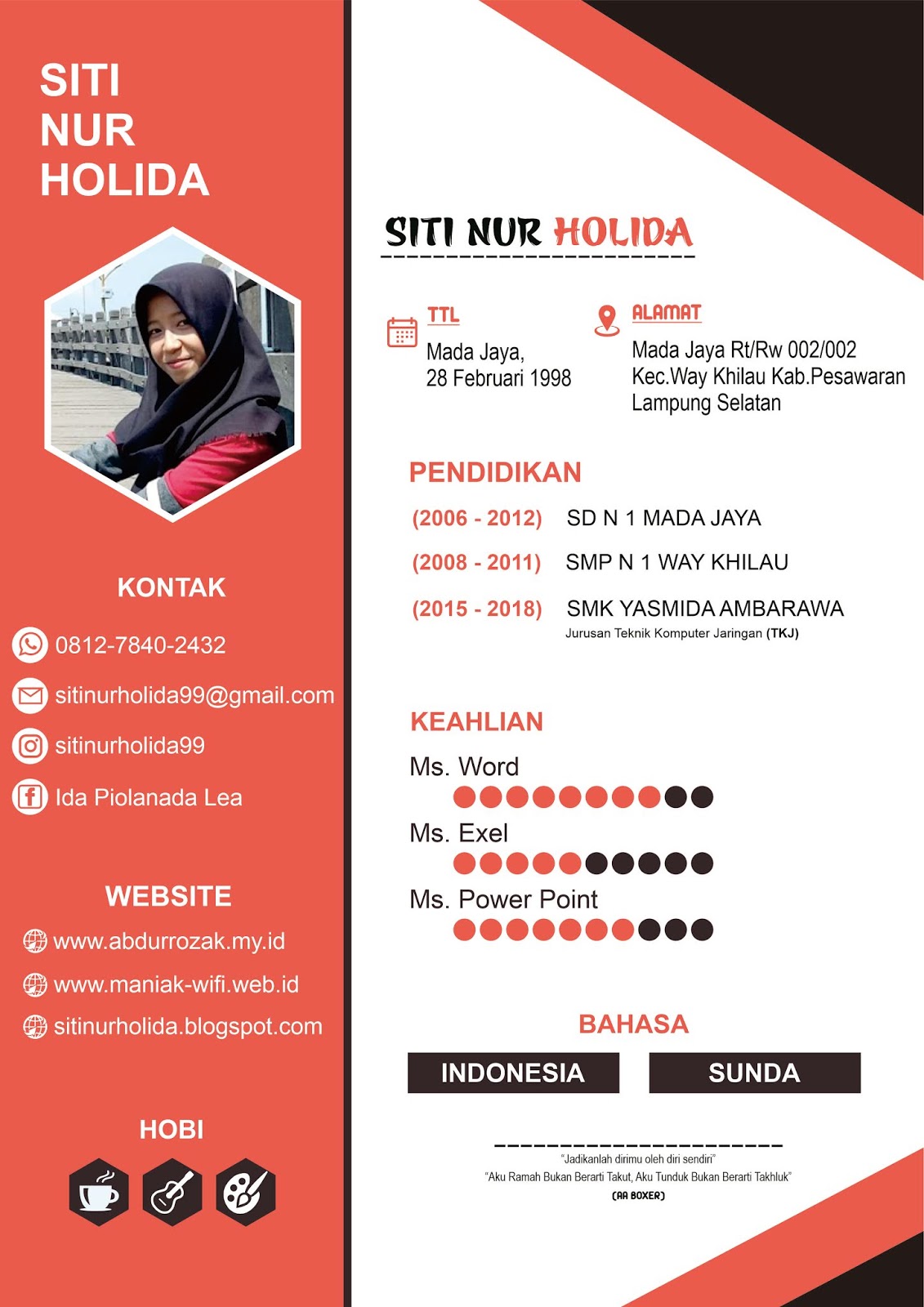 Contoh Daftar Riwayat Hidup Yang Menarik | Creative cv template, Cv kreatif, Riwayat hidup