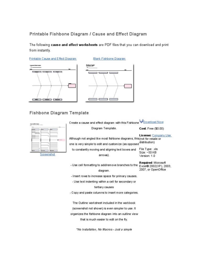 Free fishbone diagram template excel