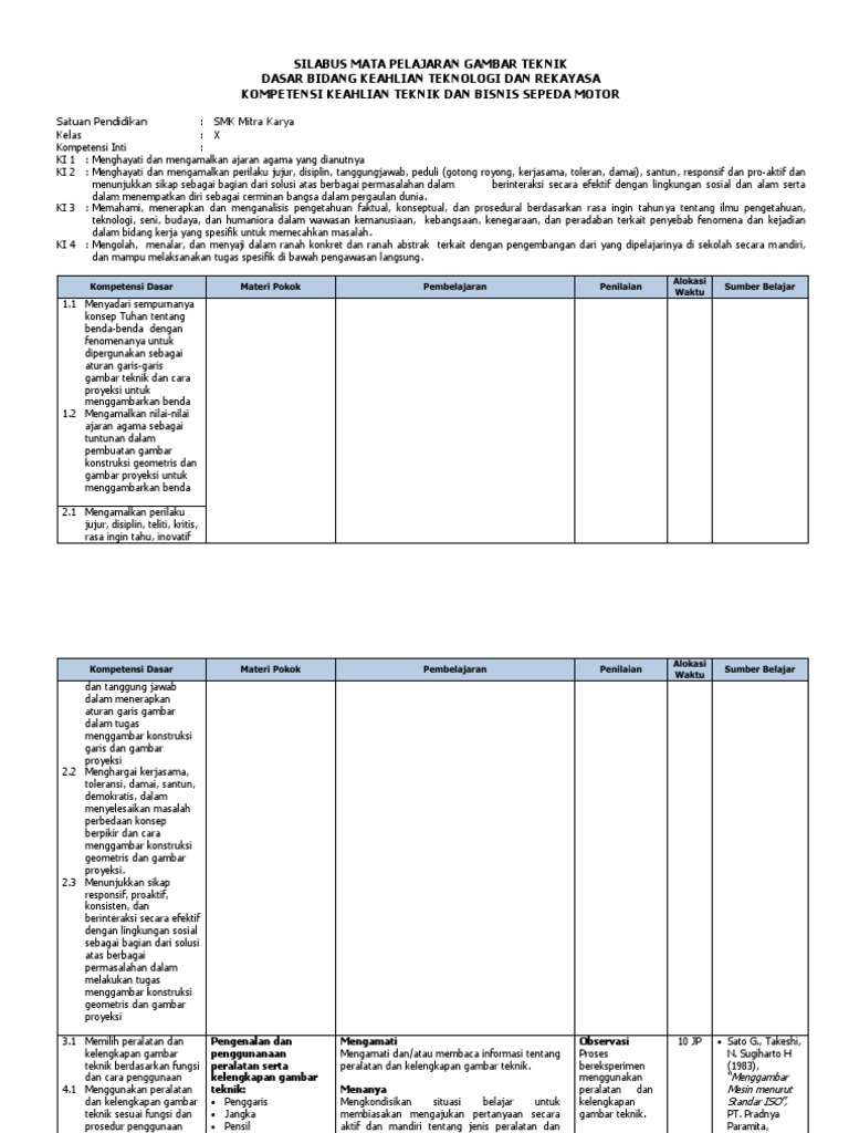 Silabus Gambar Teknik Otomotif Kurikulum 2013 Revisi 2017 - Guru Ilmu Sosial