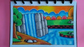 Pemandangan Air Terjun Mudah - Cara menggambar dan mewarnai gradasi warna oil pastel - YouTube di 2020 | Cara menggambar, Buku gambar, Gambar