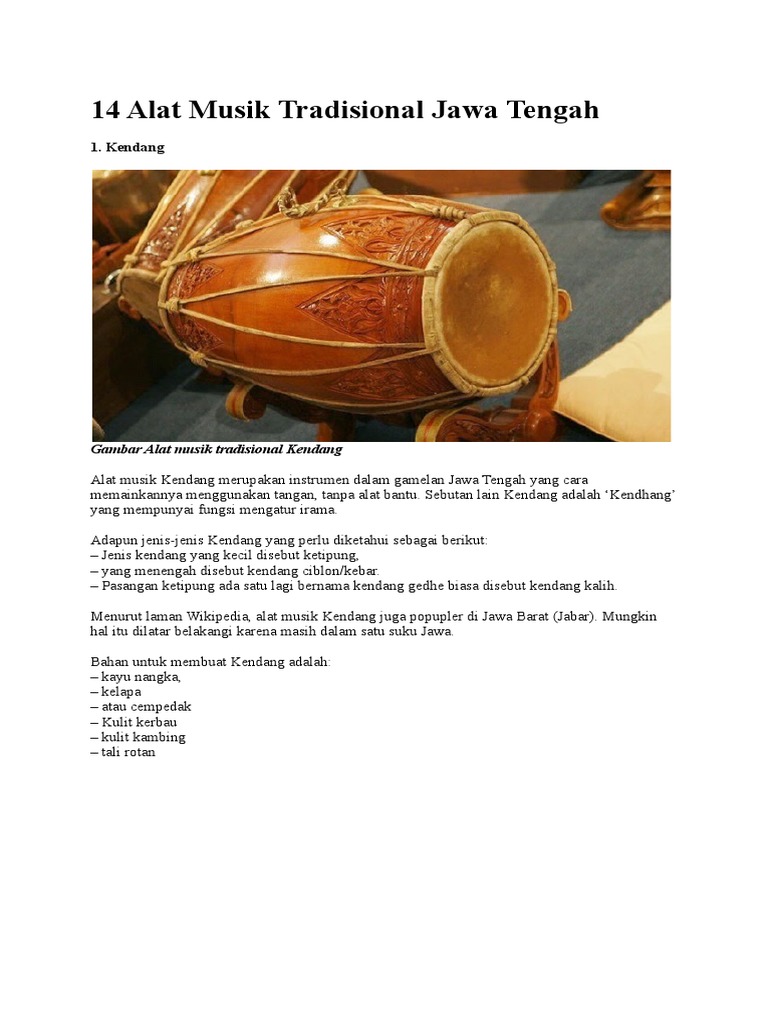 Alat Musik Tradisional Provinsi Jawa Tengah | DTECHNOINDO | Musik tradisional, Musik, Alat