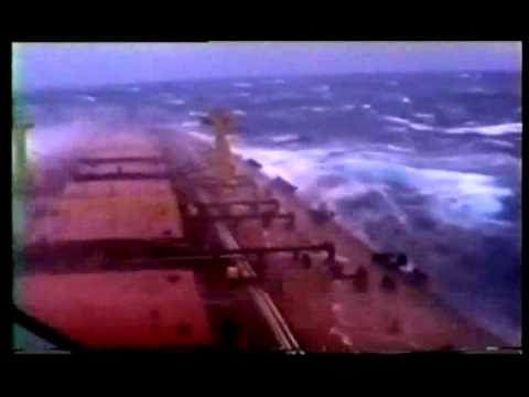 Besar kapal di gelombang rakasa besar dan kuat besar dengan angin badai ekstrim marah - YouTube