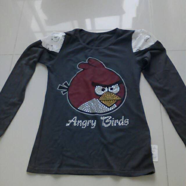 Jual Atasan Lengan Raglan/Kaos/Gambar Angry Bird/Putih-Hitam/Cotton/Size L - Jakarta Utara - Sweet Alison | Tokopedia