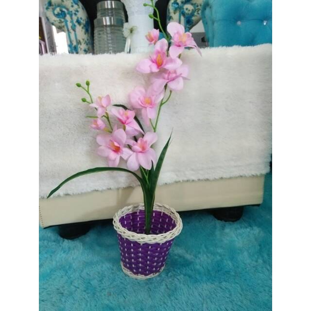 Pot rotan anyaman + bunga anggrek | Shopee Indonesia