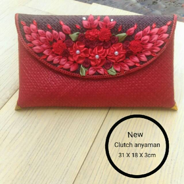Clutch Anyaman Bunga Timbul Red | Shopee Indonesia