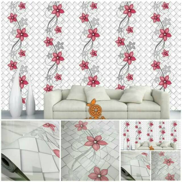 Wallpaper dinding motif anyaman bunga merah ukuran lebar 45 cm panjang 10 meter bahan PVC anti air | Lazada Indonesia