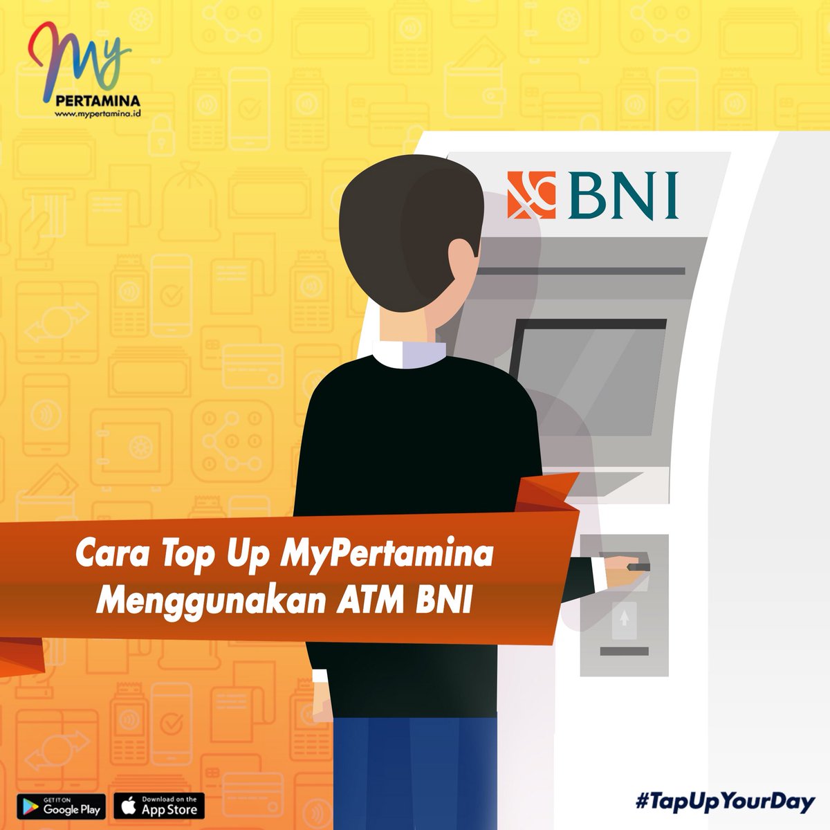 Twitter MyPertamina: “Sahabat MyPertamina, simak cara top up kartu MyPertamina menggunakan ATM BNI pada gambar tersebut! Top up MyPertamina dapat dilakukan dengan menggunakan M-Banking, Internet Banking dan ATM. . Kamu sudah