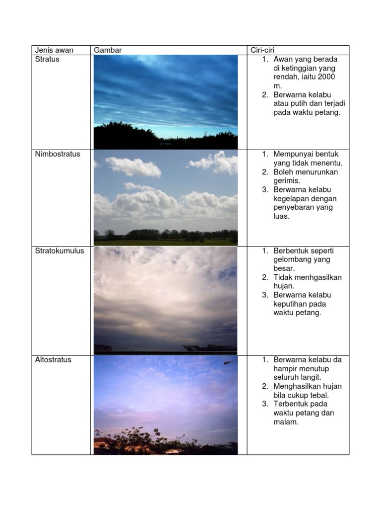 25 Gambar Awan Stratus Dan Pengertiannya- Cirrus cirrocumuluscirrostratus altocumulus altostratus nimbostratus stratocumulus stra