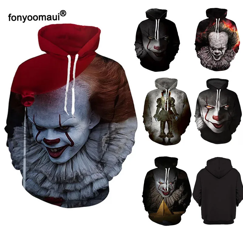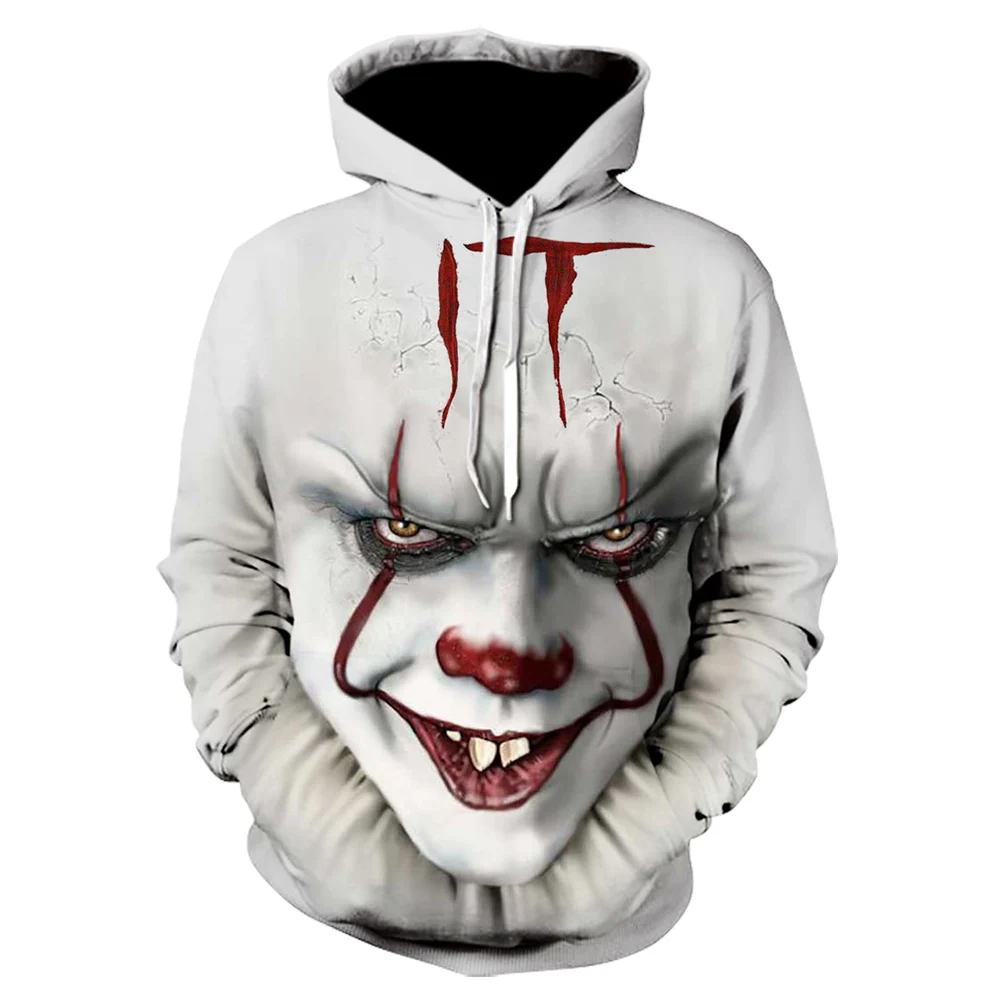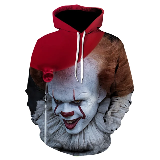 Unisex Halloween Film Ini Kostum Badut Setan Pennywise Wajah 3D Gambar Sweatshirt Hoodie Teror untuk Pria Wanita Joker Hoodie|Hoodies & Kaus| - AliExpress