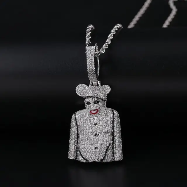 Baru Fashion Es Keluar 3D Badut Gambar Liontin Kalung Pria dengan Tenis Rantai Bling Hip Hop Emas Warna Perak Pesona perhiasan Rantai|Liontin Kalung| - AliExpress