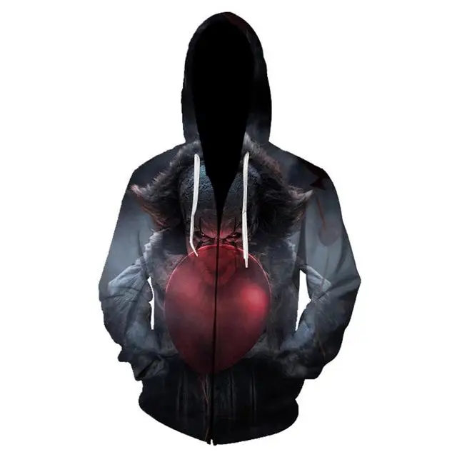 Bzpovb Kembali Jiwa Badut Harajuku Hoodie Kostum Cosplay 3D Gambar Sweatshirt Zip Cardigan Kartun Berkerudung Jaket|Hoodies & Kaus| - AliExpress